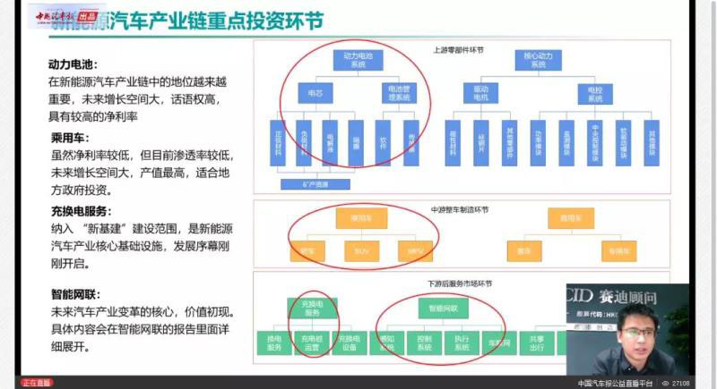 4月30日晚8點(diǎn),中國(guó)汽車(chē)報(bào)公益直播講座第十期如約開(kāi)課。本期講座的特約嘉賓賽迪顧問(wèn)汽車(chē)產(chǎn)業(yè)研究中心總經(jīng)理鹿文亮博士認(rèn)為,雖然2019年中國(guó)新能源汽車(chē)市場(chǎng)出現(xiàn)了下跌,但更多是受到了汽車(chē)市場(chǎng)整體大環(huán)境的影響?!皬闹虚L(zhǎng)期看,我們應(yīng)當(dāng)對(duì)產(chǎn)業(yè)的未來(lái)保持樂(lè)觀?!甭刮牧帘硎?,在“新基建”和汽車(chē)刺激消費(fèi)政策推動(dòng)下,預(yù)計(jì)2020年新能源汽車(chē)將重回正增長(zhǎng),2023年銷(xiāo)量有望達(dá)到230萬(wàn)輛。結(jié)合這一判斷以及對(duì)產(chǎn)業(yè)鏈的綜合分析,鹿文亮給投資者指出了當(dāng)下新能源汽車(chē)產(chǎn)業(yè)四大最值得投資的領(lǐng)域:動(dòng)力電池、乘用車(chē)、充換電服務(wù)以及智能網(wǎng)聯(lián)。