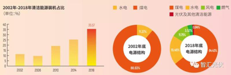 截止2018年底,大唐集團(tuán)的電力總裝機(jī)達(dá)到1.39億kW。清潔能源裝機(jī)占比不斷提升,達(dá)到35.57%,如下圖所示。
