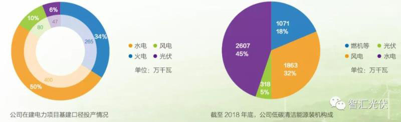 圖:截止2018年底,華能集團(tuán)在建項(xiàng)目情況及清潔能源電力構(gòu)成