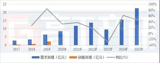從市場規(guī)模來看,GGII調(diào)研數(shù)據(jù)顯示,2019年中國膜電極市場銷售規(guī)模為2.28億元。GGII預(yù)計(jì),到2025年中國車用領(lǐng)域氫燃料電池膜電極市場需求有望達(dá)到23億元,在2022年冬奧會(huì)后,國內(nèi)氫燃料電池市場將會(huì)在2023年進(jìn)入調(diào)整期,因此膜電極的需求量較2022年將會(huì)下降。