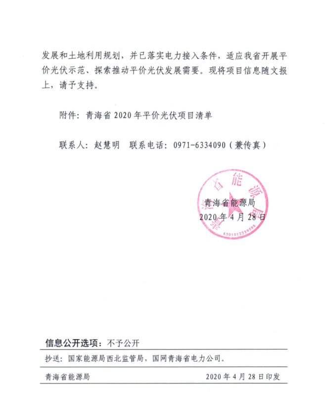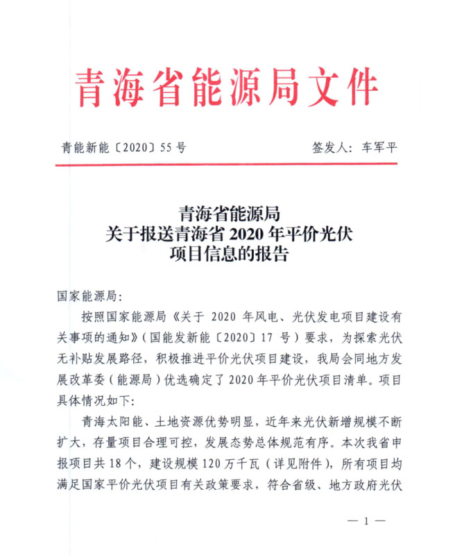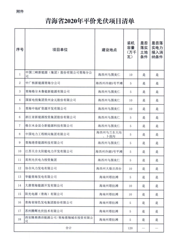 近日,青海省能源局報送2020年平價光伏項目名單,包括18個項目共計1.2GW。