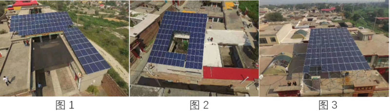 圖1中:南北兩個屋頂,南側(cè)的屋頂組件安裝角度小一些,目測約15°左右,北側(cè)的屋頂組件安裝角度明顯大很多,約35°左右。