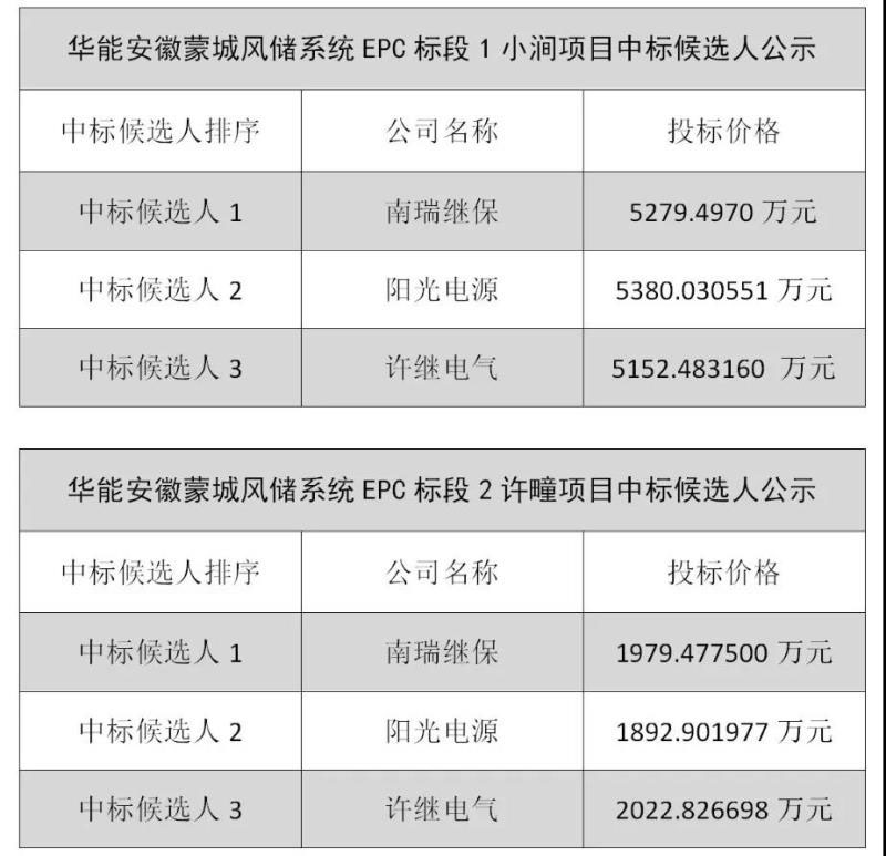 經(jīng)過一個多月的激烈角逐,華能安徽蒙城縣風(fēng)儲EPC招標(biāo)終于有了結(jié)果。
