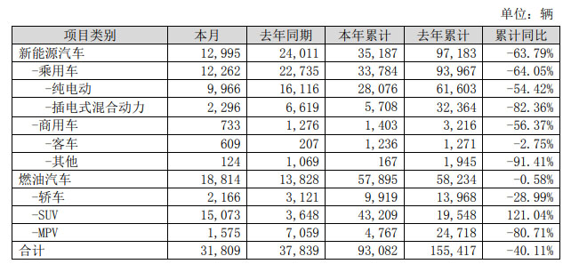 分類別來看,比亞迪4月共銷售新能源汽車12995輛,同比下滑45.9%,2020年1-4月累計新能源汽車銷量35187輛,同比下滑63.79%;比亞迪4月共銷售燃油車18814輛,同比增長36.1%,2020年1-4月燃油車累計銷量57895輛,同比下降0.6%。