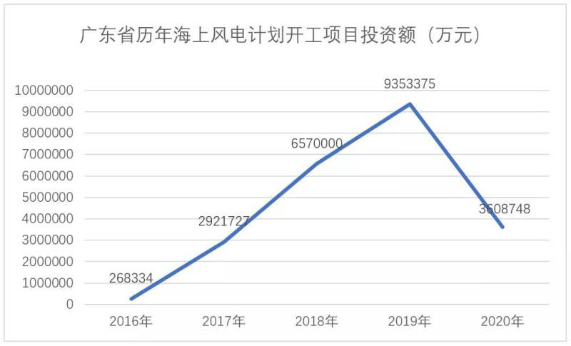 據(jù)《廣東省2020年重點建設(shè)項目》顯示,2020年計劃新開工的海上風(fēng)電項目僅3個,項目總?cè)萘?80萬千瓦,總投資為360.9億。而就在一年前,廣東省計劃開工的海上風(fēng)電項目高達10個,總?cè)萘繛?77.8萬千瓦,總投資額高達935.3億元。無論數(shù)量還是容量皆數(shù)倍于今年。
