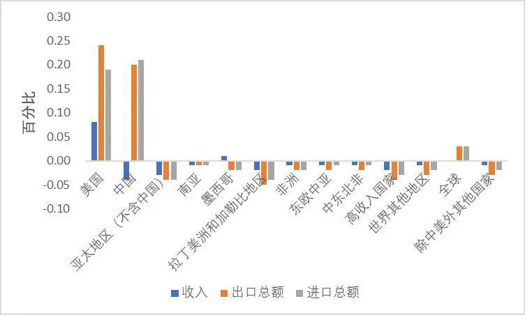 最后一部分,報(bào)告用可計(jì)算的一般均衡模型量化了中美協(xié)定對(duì)兩國(guó)和世界其他地區(qū)的貿(mào)易和收入影響。與理論一致,報(bào)告結(jié)果顯示,這些影響取決于中國(guó)決定執(zhí)行協(xié)議的方式。當(dāng)中國(guó)通過(guò)實(shí)行對(duì)美國(guó)的優(yōu)惠待遇達(dá)到進(jìn)口目標(biāo)時(shí),相對(duì)于貿(mào)易戰(zhàn)的升級(jí),結(jié)果對(duì)中國(guó)和美國(guó)產(chǎn)生了積極的收入效應(yīng)。但是,與目前的政策相比,該交易將使除美國(guó)及其鄰國(guó)墨西哥以外的所有國(guó)家情況惡化。歧視性措施,例如優(yōu)惠降低關(guān)稅或非關(guān)稅壁壘或?qū)拿绹?guó)進(jìn)口的商品和服務(wù)進(jìn)行補(bǔ)貼,不利于第三國(guó)在中國(guó)市場(chǎng)的出口,導(dǎo)致收入損失。收入損失最大的國(guó)家將是中國(guó)(0.38%),以及目前東亞的制成品供應(yīng)商(0.32%)和拉丁美洲的商品供應(yīng)商(0.27%)。但是,如果中國(guó)滿足美國(guó)的要求,不是通過(guò)給予美國(guó)進(jìn)入市場(chǎng)的特權(quán),而是通過(guò)向所有貿(mào)易伙伴開放市場(chǎng),那么所有國(guó)家都會(huì)受益。全球收入將比有管理的貿(mào)易方案高出0.37%,中國(guó)收入將高出0.46%。