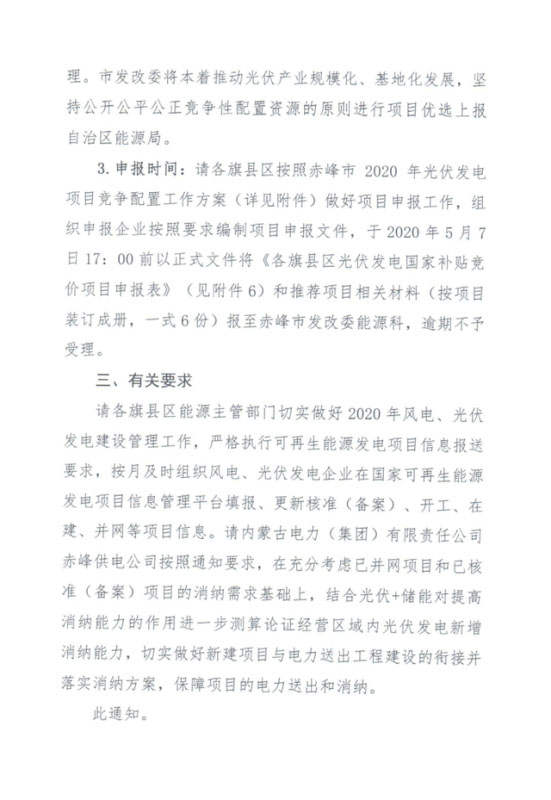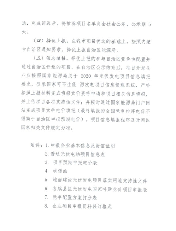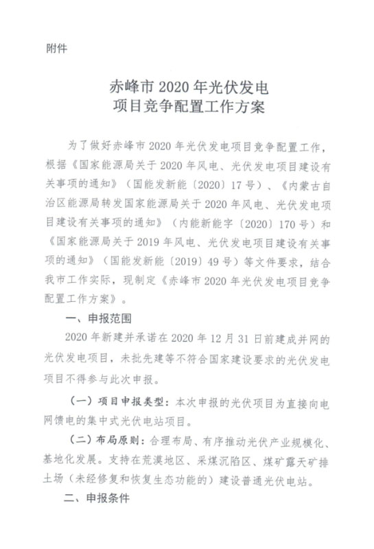 近日內(nèi)蒙古赤峰市發(fā)改委印發(fā)《赤峰市2020年光伏發(fā)電項(xiàng)目競爭配置工作方案》,其中指出優(yōu)先支持對提高電網(wǎng)消納能力效果好且具備價(jià)格競爭力的電站項(xiàng)目。如果普通光伏電站配置儲能系統(tǒng),則應(yīng)保證儲能系統(tǒng)時(shí)長為1小時(shí)及以上、配置容量達(dá)到項(xiàng)目建設(shè)規(guī)模(即預(yù)計(jì)備案規(guī)模)5%及以上,并提出儲能配置對提高電網(wǎng)消納能力的實(shí)施方案,承諾接受電網(wǎng)調(diào)度。
