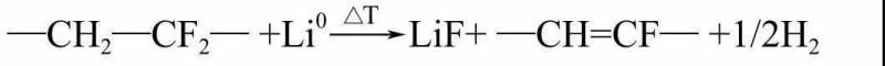 在更高溫度下,負極表面失去了SEI膜的保護,嵌入負極的鋰將與電解液溶劑直接反應有C2H4O產(chǎn)生,可能為乙醛或氧化乙烯。嵌入鋰的石墨在300℃以上與熔融的PVDF–HPF共聚物發(fā)生如下反應: