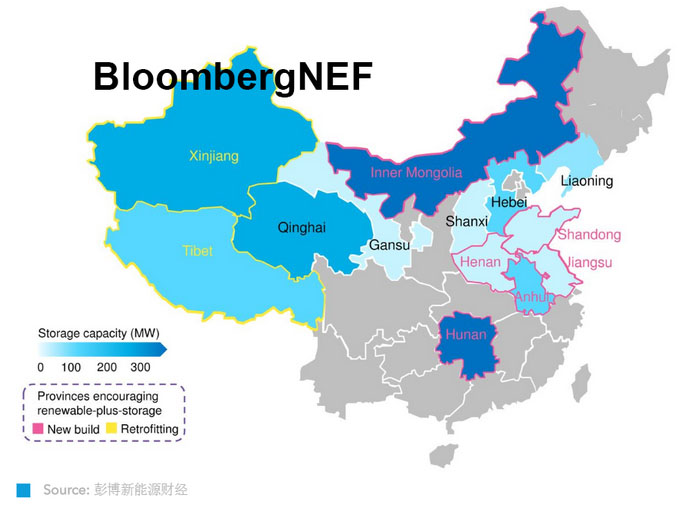 2019年及2020年一季度期間,中國已宣布的可再生能源+儲能項目的總規(guī)模
