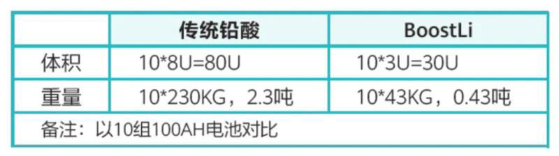 除了能解決客戶防盜問題外,BoostLi還具有體積小、功率密度高的特點(diǎn),支持模塊化平滑擴(kuò)容,無需新增電池柜即可滿足備電擴(kuò)容需求。以100AH容量為例,BoostLi比鉛酸電池體積減少60%,重量降低80%。