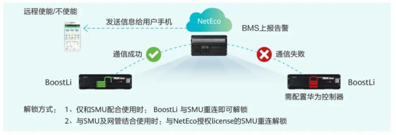 BoostLi配合華為電源及網(wǎng)管可實(shí)時(shí)顯示電池SOH&SOC,能實(shí)時(shí)顯示站點(diǎn)的備電時(shí)長(zhǎng),有效預(yù)警了宕站風(fēng)險(xiǎn),最大程度提升站點(diǎn)可靠性。