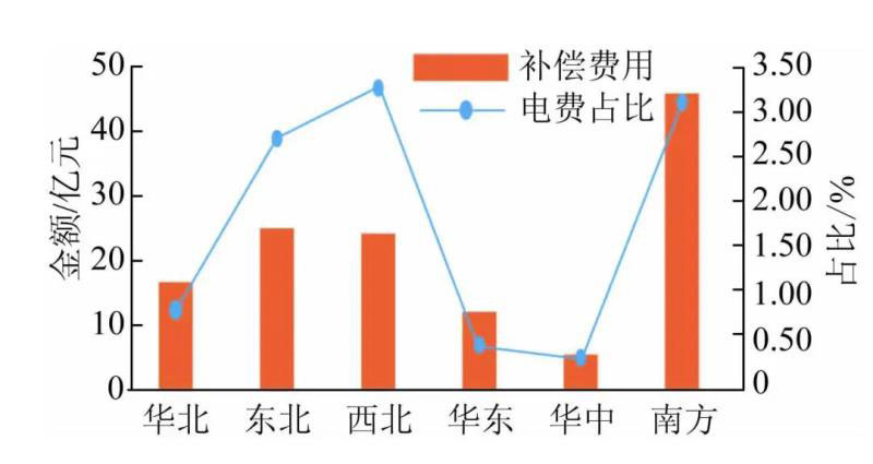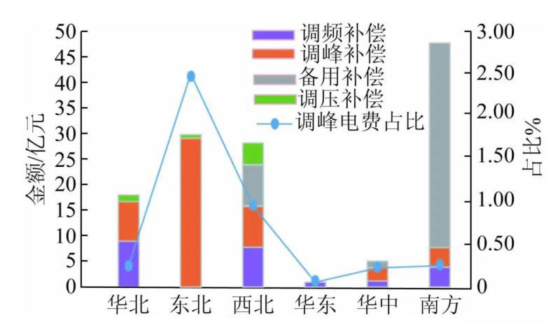 圖1 各區(qū)域電力輔助服務(wù)補(bǔ)償費(fèi)用情況