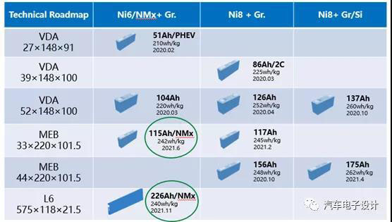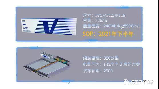 第二款是L6薄片無鈷長電芯,這個電芯的尺寸是575長度,厚度是21.5mm,有點像是使用軟包590的電芯把幾個電芯合起來封裝在一起。這個蜂巢能源是和長城汽車,NEDC的續(xù)航已經(jīng)目標面向了880公里,預(yù)計在2021年下半年推向市場。備注:這個尺寸規(guī)格是跑不掉的,里面也可以使用高鎳的材料來做的。