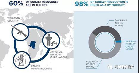 這里首先談一下無鈷的訴求是哪里的,當Elon Musk談到下一代從NCA進化成無鈷的時候大家都是一頭霧水。當大眾和寶馬在電池材料端親自去探討,這個事情是涉及新能源汽車在歐洲和美國的形象問題,也是發(fā)展到一定階段需要客戶的事情。鈷是一種比鋰還要少的金屬資源,電池是最大的下游領(lǐng)域,在全球及中國鈷消費量占比分別為 44%和77%。當歐洲國家開始指定燃油車禁售時間點的時候,同時也在不斷強調(diào)有關(guān)電池資源方面的考慮,如果一項材料你把控不住,那這種材料的價格就會失控。全球鈷金屬儲量分布非常不均衡,資源主要集中在剛果(金)、 澳大利亞、古巴三個國家,這三個地方就占了一大半。歐洲、中國和美國這三個目前的電動汽車最主要的市場,都沒有多少鈷礦。