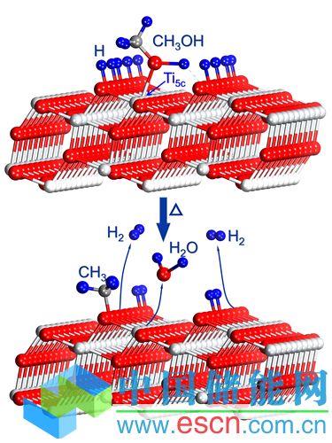 甲醇能夠提高二氧化鈦光催化分解水的產(chǎn)氫效率,同時(shí)甲醇本身也能光催化產(chǎn)氫。目前普遍認(rèn)為anatase表面的光催化產(chǎn)氫效率要高于rutile表面,但是產(chǎn)氫反應(yīng)的機(jī)理仍不是十分清晰。如果能從分子水平上理解二氧化鈦不同表面的產(chǎn)氫機(jī)理,能為發(fā)展高效催化劑提供新的思路。