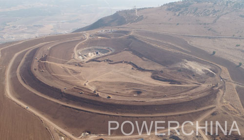 中東抽蓄項目位于約旦河下游西岸,上水庫位于河谷西岸的山頂,可眺望至供水源加利利海,壩頂高程209.1米,由防浪墻和壩頂公路等組成。上水庫主壩為均質(zhì)土壩,壩內(nèi)覆蓋土工膜,總填筑量148萬立方米,蓄水量310余萬立方米,蓄水位高程207.8米。庫盆開挖區(qū)主要分布著高含水高液限粘土,大部分含礫石和漂石,為了降低天然含水率實現(xiàn)土料快速上壩施工,項目部不斷經(jīng)過方案比選優(yōu)化,最終選定“土料薄層平采+退占法鋪料”快速施工工藝,并在2019年11月填筑施工過程中創(chuàng)造了28萬立方米高產(chǎn)紀錄,圓滿完成年度生產(chǎn)任務。