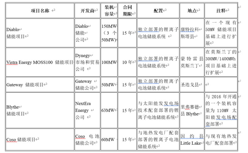 太平洋天然氣和電力公司(PG&E)正在等待批準的儲能項目如下表所示: