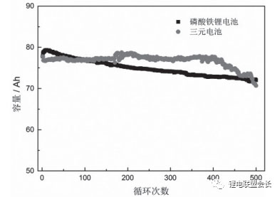 圖2 商業(yè)化磷酸鐵鋰電池和三元電池單體的循環(huán)壽命測試結果