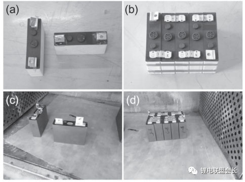 圖1 商業(yè)化磷酸鐵鋰電池(a)單體和(b)模塊;商業(yè)化三元電池(a)單體和(b)模塊