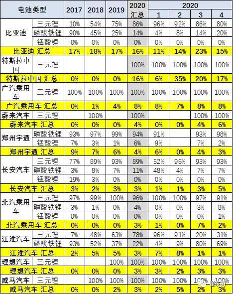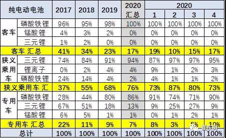 2020年的客車(chē)產(chǎn)品的磷酸鐵鋰占比100%,仍是相對(duì)保守。