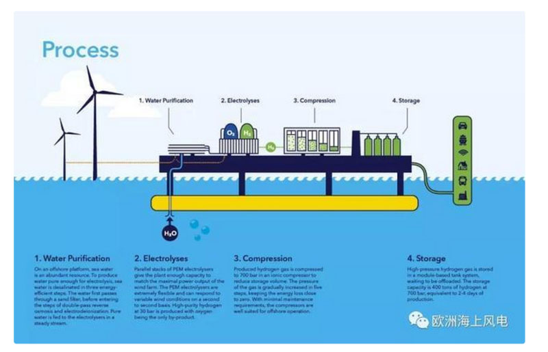 比利時(shí)的Oostende港口正計(jì)劃建造一臺(tái)50兆瓦的電解槽,該電解槽再次由海上風(fēng)電提供動(dòng)力,然后將在2022年與一座氫發(fā)電廠示范項(xiàng)目配對(duì)。主要目的是解決比利時(shí)海洋可再生能源供應(yīng)與電力需求。