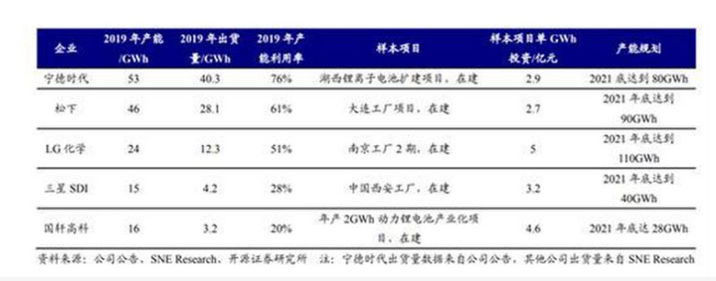 若對(duì)比全球各電池廠商產(chǎn)能利用率,此次定增對(duì)國(guó)軒高科顯得十分迫切。數(shù)據(jù)顯示,國(guó)軒高科2019年產(chǎn)能利用率僅為20%,而樣本項(xiàng)目單GWh投資/億元達(dá)到了4.6。