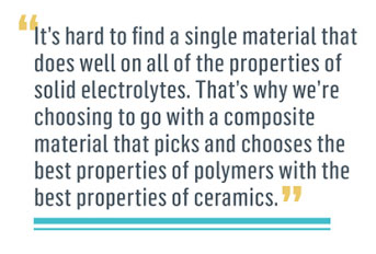很難找到一種對固態(tài)電解質(zhì)所有性能都合適的材料。這就是我們?yōu)槭裁磿x擇復(fù)合材料的原因,挑選性能最好的聚合物與性能最好的陶瓷結(jié)合。