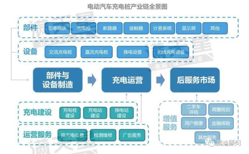 電動(dòng)汽車充電樁產(chǎn)業(yè)鏈上游為充電樁部件與設(shè)備制造環(huán)節(jié);中游為充電運(yùn)營環(huán)節(jié),包括充電樁和充電站建設(shè)和運(yùn)營服務(wù);下游為后服務(wù)市場環(huán)節(jié),如在充電時(shí)獲得大量數(shù)據(jù),通過數(shù)據(jù)挖掘和分析對(duì)外提供增值數(shù)據(jù)服務(wù)。