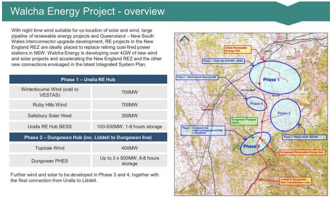 Walcha Energy公司是Mirus Energy公司和Energy Estate公司的合資企業(yè),其擬議部署的設(shè)施包括位于Dungowan大壩的抽水蓄能設(shè)施、在Uralla附近部署的裝機容量高達500MW/2500MWh電池儲能系統(tǒng),以及高達3.8GW風力發(fā)電場和700MW太陽能發(fā)電場。