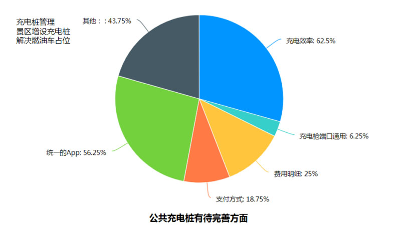 在充電樁建設的方面,車主們希望充電樁的分布可以更均勻;在旅游景區(qū)或者公園的停車區(qū)增設充電樁,方便車主在游玩時充電;加大交流樁數(shù)量,考慮插電混動車型充電;利用城管管理的市政馬路停車位,安裝交流充電樁,滿足充電需求。