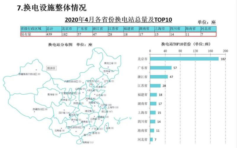 截至4月,全國共有換電站有439座,主要分布在一線城市及新能源汽車推廣較好的省市。除了北汽新能源、蔚來汽車外,浙江時(shí)空電動(dòng)等車企以及國家電網(wǎng)、南方電網(wǎng)等能源企業(yè)均在進(jìn)行布局。