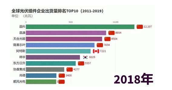 2019年全球組件制造商出貨量排名中,前十位中有八家為中國(guó)公司。其中,韓華Q-Cells位列第六,美國(guó)光伏巨頭First Solar位列第八。