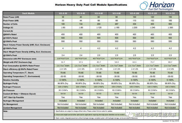 第一款發(fā)布的型號是150kW,燃料電池堆棧加上IP67外殼總重約為80kg。Horizon的目標(biāo)是利用性能優(yōu)勢,在重量就是金錢的重型車輛燃料電池系統(tǒng)中建立基準(zhǔn)。