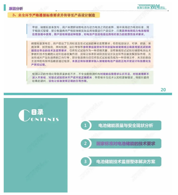 中國(guó)電科院電池儲(chǔ)能技術(shù)檢測(cè)部主任官亦標(biāo)認(rèn)為,電池儲(chǔ)能質(zhì)量與安全是儲(chǔ)能行業(yè)長(zhǎng)期健康發(fā)展的立足之本,當(dāng)前儲(chǔ)能行業(yè)正處于關(guān)鍵的十字路口,對(duì)電化學(xué)儲(chǔ)能應(yīng)該實(shí)行全鏈條全環(huán)節(jié)閉環(huán)管理,嚴(yán)格執(zhí)行國(guó)標(biāo)標(biāo)準(zhǔn),以杜絕和價(jià)格戰(zhàn)如影隨形的質(zhì)量與安全隱患,來(lái)推動(dòng)行業(yè)走向健康可持續(xù)發(fā)展之路。