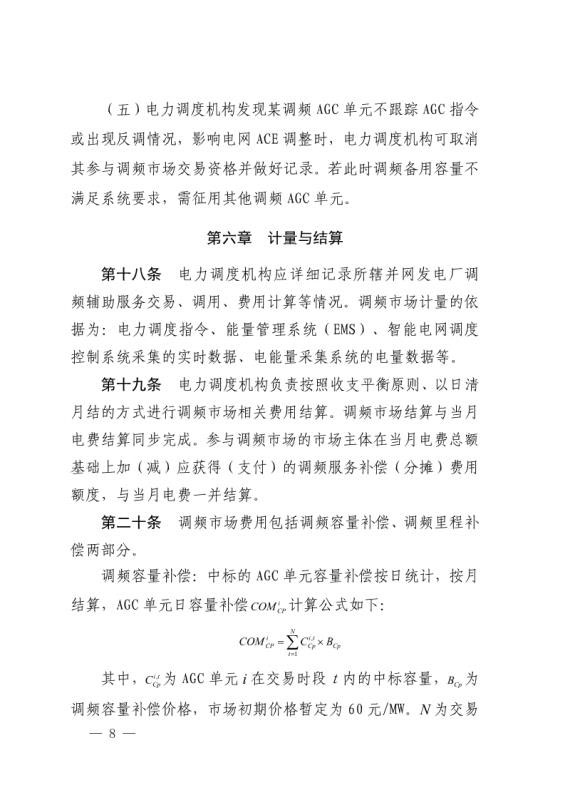 華北能監(jiān)局6月18日正式印發(fā)《蒙西電力市場調(diào)頻輔助服務交易實施細則(試行)》,其中指出市場主體可同時參與調(diào)頻市場和現(xiàn)貨電能量市場,并分別獲得調(diào)頻容量及調(diào)頻里程補償。其中調(diào)頻里程申報價格范圍暫定為6-15元 / MW,調(diào)頻容量補償市場初期價格暫定為60元 / MW。