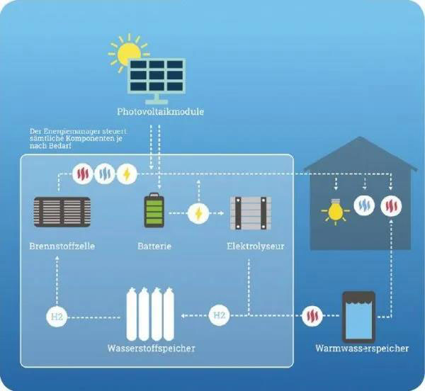 HPS Picea(R)由電池、電解槽、氫燃料電池和儲(chǔ)氫裝置組成,將能源行業(yè)中一些最有希望的新發(fā)展組合到了一起,從而實(shí)現(xiàn)了前所未有的能源自主性消費(fèi)產(chǎn)品:全年100%離網(wǎng)的清潔無(wú)CO2能源,此外,利用廢熱可節(jié)省多達(dá)50%的供熱成本。
