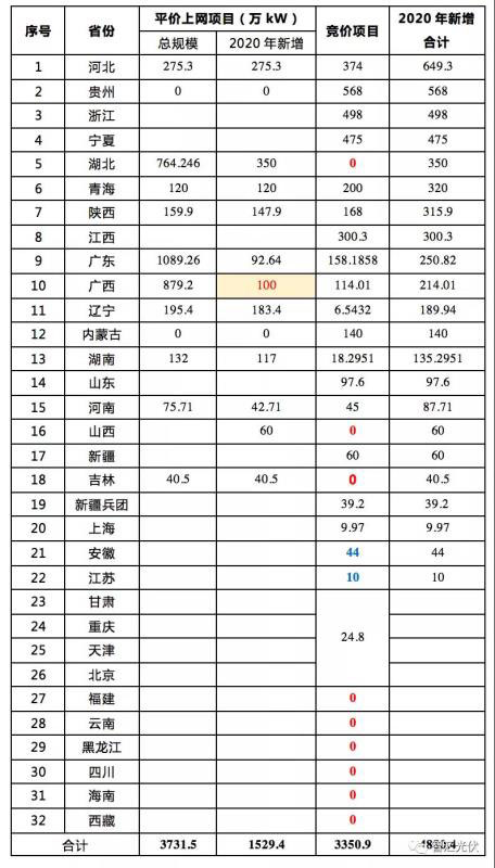 2020年平價、競價光伏項目的申報到目前為止已經(jīng)告一段落。
