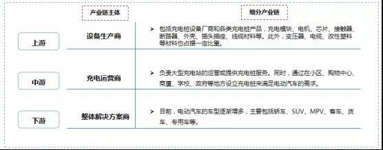 充電樁市場產(chǎn)業(yè)鏈的主體以充電樁設(shè)備生產(chǎn)商、充電運(yùn)營商、新能源汽車為代表,這三個(gè)主體分別位于產(chǎn)業(yè)鏈上游、中游和下游,在整個(gè)市場中扮演著重要的角色,經(jīng)常相互重合。
