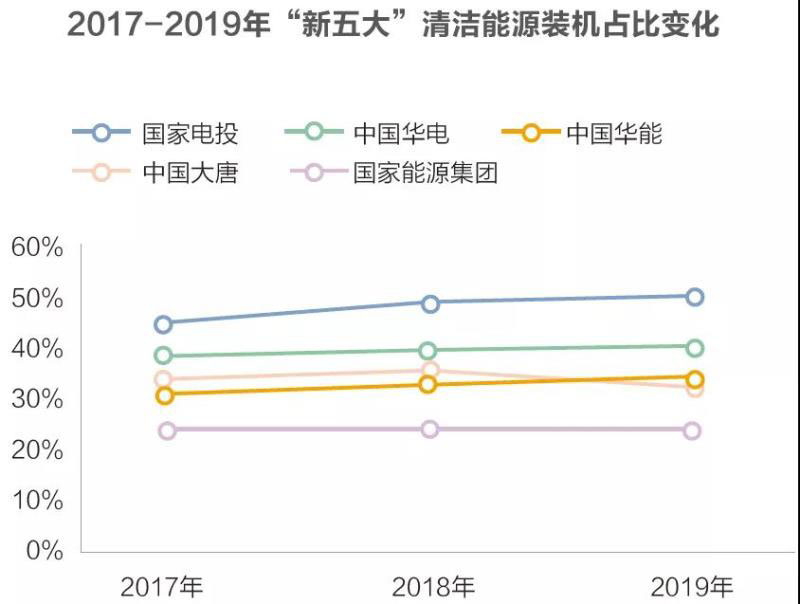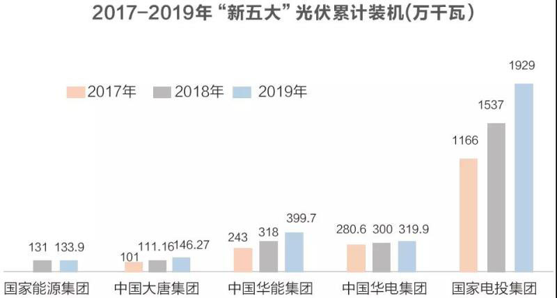 當(dāng)然,在光伏產(chǎn)業(yè)發(fā)展上,五大集團(tuán)也有例外者,過去國家電投在五大中體量最小,但卻是最有特色的一家。在其他企業(yè)著力發(fā)展風(fēng)電的時(shí)候,國家電投卻風(fēng)光并行,目前不僅是全球最大的光伏發(fā)電商,還在自身的電源結(jié)構(gòu)調(diào)整中成效卓著——2019年,國家電投的清潔能源裝機(jī)占比第一次超過了50%,成為傳統(tǒng)發(fā)電企業(yè)中“最清潔的公司”。