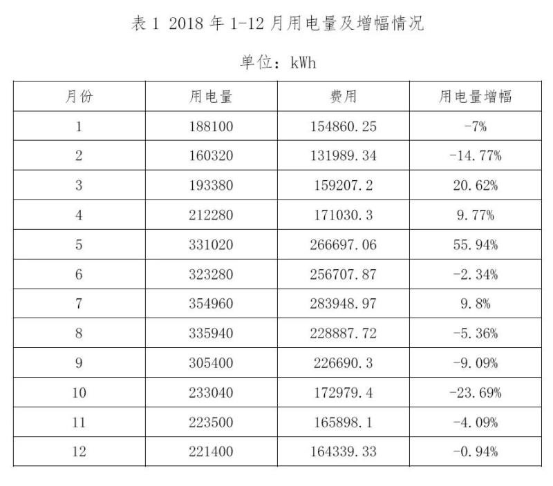醫(yī)療衛(wèi)生機(jī)構(gòu)的能源消耗主要由電力、燃料、用水和城市管網(wǎng)供熱構(gòu)成,其中燃料以煤(鍋爐用)、人工燃?xì)?、天然氣、燃油為主。從我院能源消耗分析?lái)看,主要就是電力消耗和用水消耗,由于地處廣東地區(qū),炎熱時(shí)間持續(xù)長(zhǎng),一般從5月初到持續(xù)到10月低,在這期間醫(yī)院最大的電量消耗就是空調(diào),用電量會(huì)猛增。從2018年數(shù)據(jù)統(tǒng)計(jì)來(lái)看(表1),從4月進(jìn)入5月,我院用電量會(huì)迅速增加55.94%,大約是前幾個(gè)月增幅的數(shù)倍。由此可見(jiàn),醫(yī)院耗能問(wèn)題不可忽視。