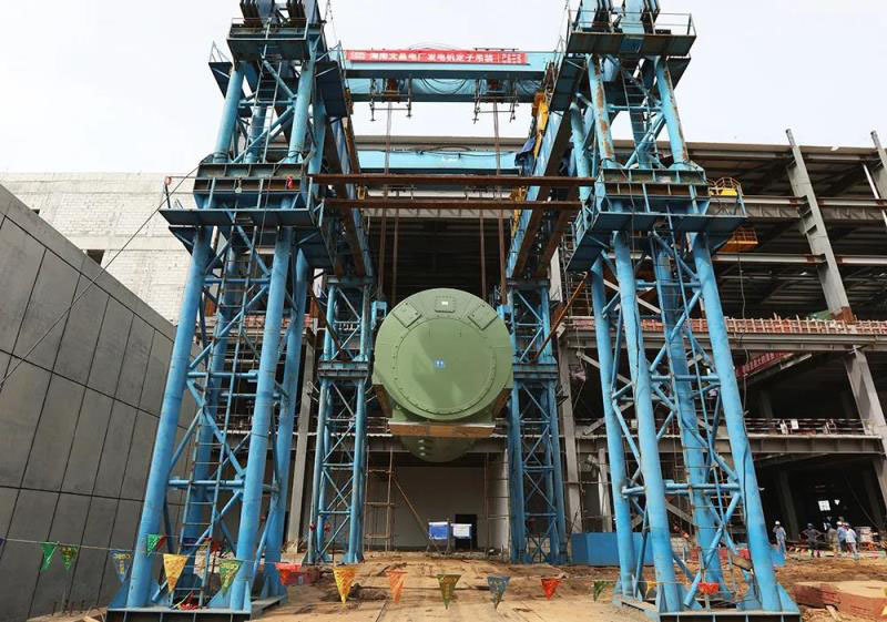 圖為文昌燃?xì)怆姀S進(jìn)行發(fā)電機(jī)定子吊裝。