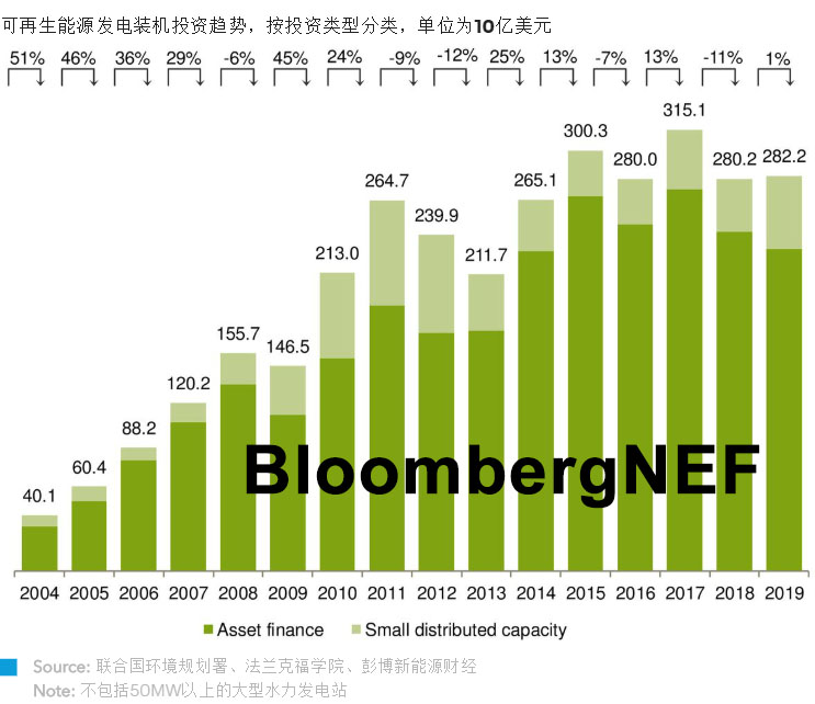 05、隨著可再生能源裝機成本下降,即使投資與往年幾乎持平,每年建成投運的可再生能源裝機容量仍能刷新歷史紀錄。2019年,全球可再生能源投資為2822億美元,同比增長1%。