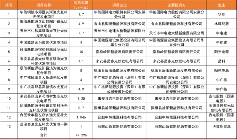 下圖為2020年安徽省光伏競(jìng)價(jià)集中式項(xiàng)目名單匯總: