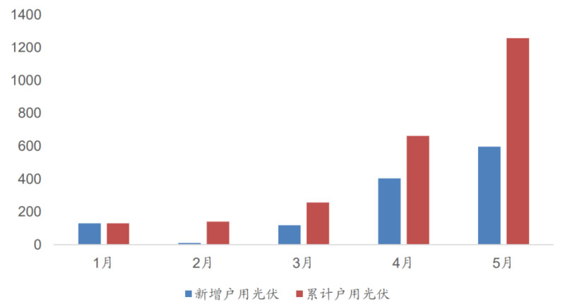 圖:國內(nèi)戶用光伏新增和累計裝機(jī)規(guī)模(單位:MW)