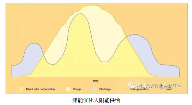 太陽能供給曲線(黃色)是變量,與傳統(tǒng)電力需求曲線(藍色)僅部分保持一致,將光伏+儲能相結(jié)合可以儲存多余電量(白色區(qū)域),當(dāng)用戶需求過高時(藍色區(qū)域),可以將儲存的太陽能電量運送回輸電網(wǎng),最大限度的利用儲能的技術(shù)潛力。