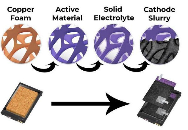 保持住電池負(fù)電荷的陽極是由泡沫銅制成的,上面還涂有所需的活性材料。