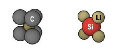 作為陽極,硅比石墨好用的原因在于需要4個碳原子才能hold住鋰,而1個硅原子就能hold住4個鋰離子 。這是一次重大升級……使得硅的性能比石墨強(qiáng)了3倍。