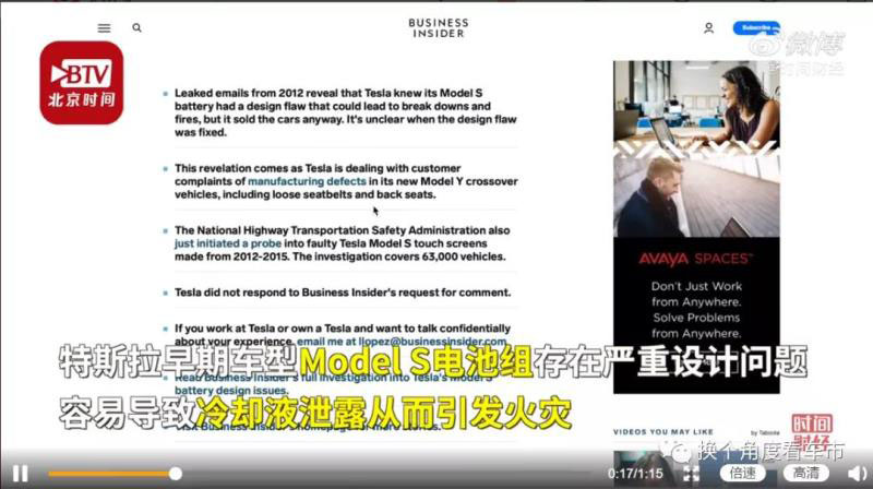 Business Insider在報(bào)道中表示,根據(jù)特斯拉內(nèi)部電子郵件和三名知情人士的說法,Model S動(dòng)力電池總成依靠冷卻盤管來調(diào)節(jié)溫度,但冷卻盤管的末端接頭是用弱鋁制成的,有時(shí)會(huì)在末端接頭的雄部和母部銅焊處形成細(xì)小的針孔。這可能會(huì)導(dǎo)致汽車電池短路,或在電池內(nèi)部留下易燃?xì)埩粑铩?