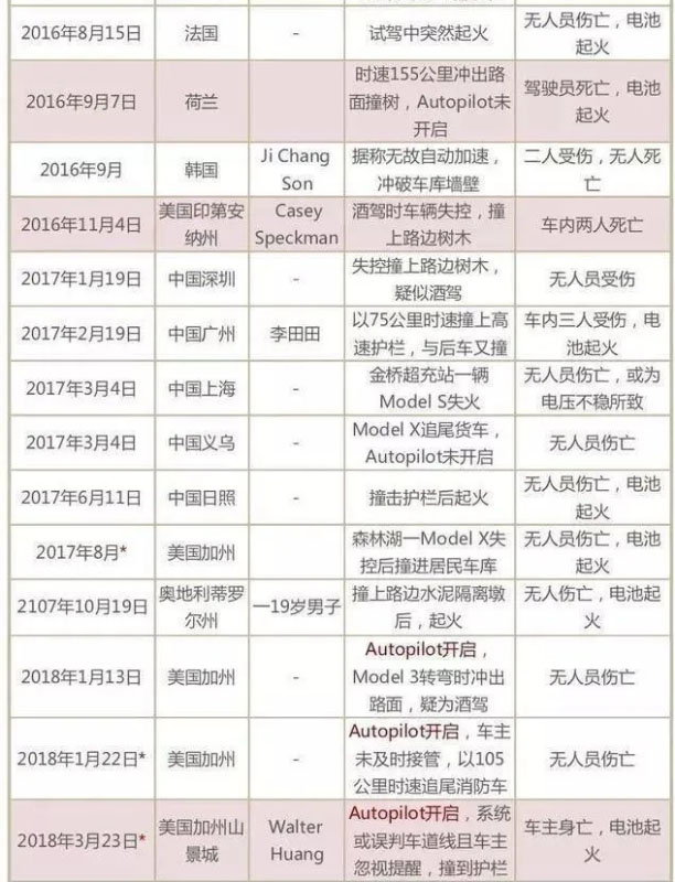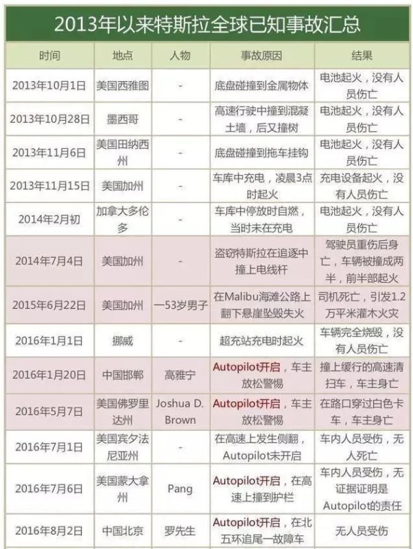 新能源情報(bào)分析網(wǎng)已經(jīng)連續(xù)5年就搭載松下提供的18650型7000余節(jié)鈷酸鋰電池、18650型9000余節(jié)鎳鈷鋁電芯的特斯拉Model S和Model X車型,在行駛、碰撞及充電環(huán)節(jié),引發(fā)的燃燒、自燃及爆炸事故,發(fā)布相關(guān)原創(chuàng)稿件20余篇。