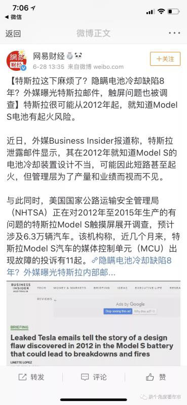 隨后網(wǎng)易財(cái)經(jīng)發(fā)文,特斯拉動(dòng)力電池總成的冷卻系統(tǒng)存在隱患同時(shí),美國國家公路運(yùn)輸安全管理局(NHTSA)對2012-2015年量產(chǎn)的有問題的特斯拉Model S觸摸屏展開調(diào)查,預(yù)計(jì)設(shè)計(jì)6.3萬臺。